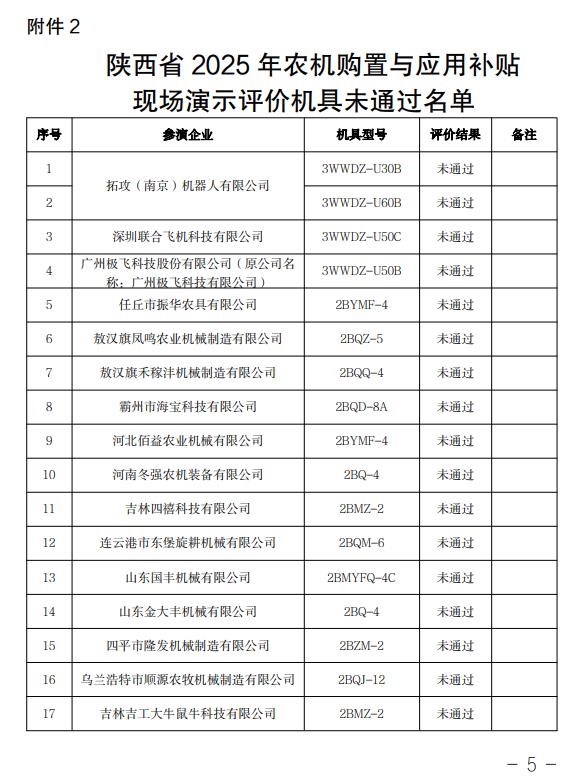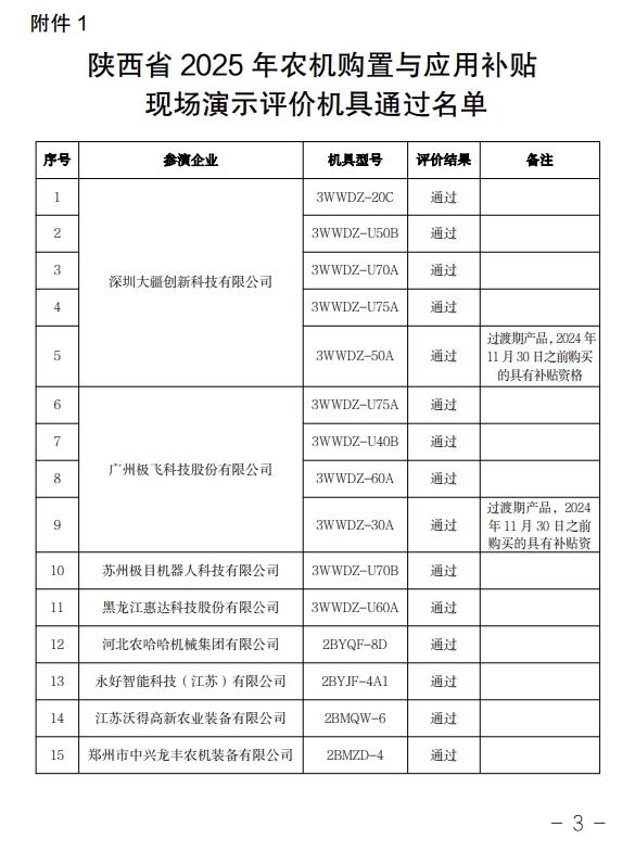 陜西省2025年農(nóng)機購置與應(yīng)用補貼現(xiàn)場演示評價結(jié)果