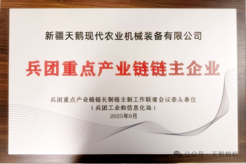 領(lǐng)航兵團(tuán)農(nóng)機(jī)新征程 | 天鵝股份新疆公司榮膺“兵團(tuán)重點(diǎn)產(chǎn)業(yè)鏈鏈主企業(yè)”